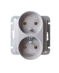 LOGI Gniazdo podwójne 2x2P+Z śrubowe 16A 250V Srebrny 25210