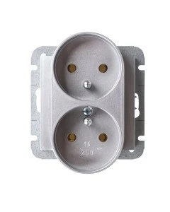 LOGI Gniazdo podwójne 2x2P+Z kompletne z przesłoną styków śrubowe 16A 250V Srebrny 25211