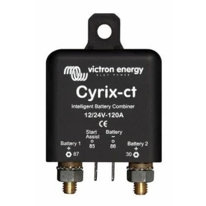 Cyrix-ct 12/24 może być zasilany dwoma napięciami. Zamknie się również, jeśli napięcie jednego z akumulatorów jest zbyt niskie do jego działania.