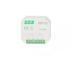 SEP-02 służy do separacji sygnałów sterujących w układach automatyki z wydzielonymi podgrupami sterowania i sterowaniem centralnym.