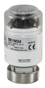 Profesjonalne siłowniki elektrotermiczne SE1 to niezawodne urządzenia przeznaczone do precyzyjnego sterowania zaworami strefowymi oraz klimakonwektorami w nowoczesnych instalacjach grzewczych, wentylacyjnych i klimatyzacyjnych. Napędy te są idealnie przystosowane do współpracy z zaworami z serii VFX, a w naszej ofercie znajdą Państwo wersje oferujące sterowanie typu Zamknij/Otwórz oraz analogowe 0…10 VDC. Innowacyjna zasada działania opiera się na kapsule ze specjalnym woskiem, która reagując na temperaturę, płynnie przesuwa trzpień, natomiast po odłączeniu zasilania wbudowana sprężyna powrotna automatycznie zamyka zawór. Niezwykle cennym udogodnieniem dla instalatorów jest specjalny metalowy pierścień, który pozwala na szybki montaż siłownika bezpośrednio na korpusie zaworu, całkowicie bez użycia narzędzi. Dodatkowo, każdy siłownik został wyposażony w czytelny wskaźnik położenia zaworu, ułatwiający bieżącą wizualną kontrolę stanu pracy układu. Na życzenie urządzenia mogą zostać dostarczone z praktyczną osłoną zabezpieczającą, która umożliwia ręczne przestawianie mechanizmu, czyniąc napędy SE1 niezwykle elastycznym i bezpiecznym rozwiązaniem dla branży HVAC.