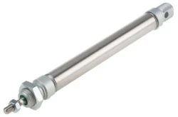 Podane wartości oporowe i nacisku powrotnego wynoszą 6 bar. Średnica 10 - 25 mm. Seria RS cylindrów ISO 6432 zapewnia wysoką wydajność i długi okres eksploatacji nawet w przypadku używania bez smarowania powietrza. Dostępne w wersji jedno- i dwustronnego działania, z tłokami z magnetycznej stali nierdzewnej we wszystkich modelach Ø12mm i wyższych. AISI 304 Obudowa ze stali nierdzewnej AISI 303 Drążek tłokowy ze stali nierdzewnej Łożysko z brązu spiekanego Wstępnie nasmarowane uszczelki NBR Anodyzowane pokrywki końcowe z aluminium Bufor zakończenia skoku Zakres ciśnień: 1-10 bar Temperatura otoczenia Zakres: Od -20°C do +80°C. Średnie: Sprężone powietrze, przefiltrowane, smarowane lub nie smarowane Dostarczana z nakrętką czołową i nakrętką tłoczyska