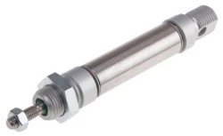 Podane wartości oporowe i nacisku powrotnego wynoszą 6 bar. Średnica 10 - 25 mm. Seria RS cylindrów ISO 6432 zapewnia wysoką wydajność i długi okres eksploatacji nawet w przypadku używania bez smarowania powietrza. Dostępne w wersji jedno- i dwustronnego działania, z tłokami z magnetycznej stali nierdzewnej we wszystkich modelach Ø12mm i wyższych. AISI 304 Obudowa ze stali nierdzewnej AISI 303 Drążek tłokowy ze stali nierdzewnej Łożysko z brązu spiekanego Wstępnie nasmarowane uszczelki NBR Anodyzowane pokrywki końcowe z aluminium Bufor zakończenia skoku Zakres ciśnień: 1-10 bar Temperatura otoczenia Zakres: Od -20°C do +80°C. Średnie: Sprężone powietrze, przefiltrowane, smarowane lub nie smarowane Dostarczana z nakrętką czołową i nakrętką tłoczyska