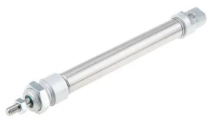 Podane wartości oporowe i nacisku powrotnego wynoszą 6 bar. Średnica 10 - 25 mm. Seria RS cylindrów ISO 6432 zapewnia wysoką wydajność i długi okres eksploatacji nawet w przypadku używania bez smarowania powietrza. Dostępne w wersji jedno- i dwustronnego działania, z tłokami z magnetycznej stali nierdzewnej we wszystkich modelach Ø12mm i wyższych. AISI 304 Obudowa ze stali nierdzewnej AISI 303 Drążek tłokowy ze stali nierdzewnej Łożysko z brązu spiekanego Wstępnie nasmarowane uszczelki NBR Anodyzowane pokrywki końcowe z aluminium Bufor zakończenia skoku Zakres ciśnień: 1-10 bar Temperatura otoczenia Zakres: Od -20°C do +80°C. Średnie: Sprężone powietrze, przefiltrowane, smarowane lub nie smarowane Dostarczana z nakrętką czołową i nakrętką tłoczyska