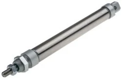 Podane wartości oporowe i nacisku powrotnego wynoszą 6 bar. Średnica 10 - 25 mm. Seria RS cylindrów ISO 6432 zapewnia wysoką wydajność i długi okres eksploatacji nawet w przypadku używania bez smarowania powietrza. Dostępne w wersji jedno- i dwustronnego działania, z tłokami z magnetycznej stali nierdzewnej we wszystkich modelach Ø12mm i wyższych. AISI 304 Obudowa ze stali nierdzewnej AISI 303 Drążek tłokowy ze stali nierdzewnej Łożysko z brązu spiekanego Wstępnie nasmarowane uszczelki NBR Anodyzowane pokrywki końcowe z aluminium Bufor zakończenia skoku Zakres ciśnień: 1-10 bar Temperatura otoczenia Zakres: Od -20°C do +80°C. Średnie: Sprężone powietrze, przefiltrowane, smarowane lub nie smarowane Dostarczana z nakrętką czołową i nakrętką tłoczyska