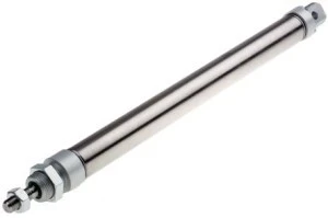 Podane wartości oporowe i nacisku powrotnego wynoszą 6 bar. Średnica 10 - 25 mm. Seria RS cylindrów ISO 6432 zapewnia wysoką wydajność i długi okres eksploatacji nawet w przypadku używania bez smarowania powietrza. Dostępne w wersji jedno- i dwustronnego działania, z tłokami z magnetycznej stali nierdzewnej we wszystkich modelach Ø12mm i wyższych. AISI 304 Obudowa ze stali nierdzewnej AISI 303 Drążek tłokowy ze stali nierdzewnej Łożysko z brązu spiekanego Wstępnie nasmarowane uszczelki NBR Anodyzowane pokrywki końcowe z aluminium Bufor zakończenia skoku Zakres ciśnień: 1-10 bar Temperatura otoczenia Zakres: Od -20°C do +80°C. Średnie: Sprężone powietrze, przefiltrowane, smarowane lub nie smarowane Dostarczana z nakrętką czołową i nakrętką tłoczyska