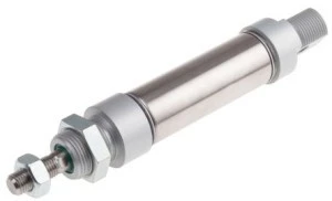 Podane wartości oporowe i nacisku powrotnego wynoszą 6 bar. Średnica 10 - 25 mm. Seria RS cylindrów ISO 6432 zapewnia wysoką wydajność i długi okres eksploatacji nawet w przypadku używania bez smarowania powietrza. Dostępne w wersji jedno- i dwustronnego działania, z tłokami z magnetycznej stali nierdzewnej we wszystkich modelach Ø12mm i wyższych. AISI 304 Obudowa ze stali nierdzewnej AISI 303 Drążek tłokowy ze stali nierdzewnej Łożysko z brązu spiekanego Wstępnie nasmarowane uszczelki NBR Anodyzowane pokrywki końcowe z aluminium Bufor zakończenia skoku Zakres ciśnień: 1-10 bar Temperatura otoczenia Zakres: Od -20°C do +80°C. Średnie: Sprężone powietrze, przefiltrowane, smarowane lub nie smarowane Dostarczana z nakrętką czołową i nakrętką tłoczyska
