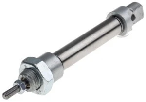 Podane wartości oporowe i nacisku powrotnego wynoszą 6 bar. Średnica 10 - 25 mm. Seria RS cylindrów ISO 6432 zapewnia wysoką wydajność i długi okres eksploatacji nawet w przypadku używania bez smarowania powietrza. Dostępne w wersji jedno- i dwustronnego działania, z tłokami z magnetycznej stali nierdzewnej we wszystkich modelach Ø12mm i wyższych. AISI 304 Obudowa ze stali nierdzewnej AISI 303 Drążek tłokowy ze stali nierdzewnej Łożysko z brązu spiekanego Wstępnie nasmarowane uszczelki NBR Anodyzowane pokrywki końcowe z aluminium Bufor zakończenia skoku Zakres ciśnień: 1-10 bar Temperatura otoczenia Zakres: Od -20°C do +80°C. Średnie: Sprężone powietrze, przefiltrowane, smarowane lub nie smarowane Dostarczana z nakrętką czołową i nakrętką tłoczyska