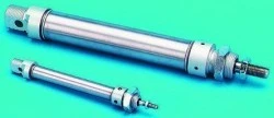 Podane wartości oporowe i nacisku powrotnego wynoszą 6 bar. Średnica 10 - 25 mm. Seria RS cylindrów ISO 6432 zapewnia wysoką wydajność i długi okres eksploatacji nawet w przypadku używania bez smarowania powietrza. Dostępne w wersji jedno- i dwustronnego działania, z tłokami z magnetycznej stali nierdzewnej we wszystkich modelach Ø12mm i wyższych. AISI 304 Obudowa ze stali nierdzewnej AISI 303 Drążek tłokowy ze stali nierdzewnej Łożysko z brązu spiekanego Wstępnie nasmarowane uszczelki NBR Anodyzowane pokrywki końcowe z aluminium Bufor zakończenia skoku Zakres ciśnień: 1-10 bar Temperatura otoczenia Zakres: Od -20°C do +80°C. Średnie: Sprężone powietrze, przefiltrowane, smarowane lub nie smarowane Dostarczana z nakrętką czołową i nakrętką tłoczyska
