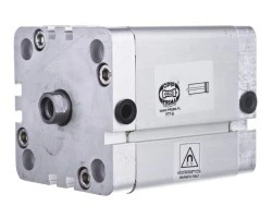 Nowa generacja siłowników pneumatycznych, zgodnych - w zakresie wymiarów gabarytowych - z normą ISO 6432. Norma ta zapewnia całkowitą zamienność siłownika oraz elementów mocujących. W siłowniku astosowano importowane uszczelnienia poliuretanowe o najwyższej odporności na ścieranie, co w znacznym stopniu podwyższa ich trwałość oraz umożliwia pracę siłownika w warunkach bezsmarowychm przy suchym, oczyszczonym powietrzu, przy zachowaniu wysokiej trwałości i wytrzymałości. Siłowniki mogą mieć zabudowany element magnetyczny w tłoku, umożliwiający stosowanie czujników położenia (tzw. BSPT - Bezstykowa Sygnalizacja Położenia Tłoka). Siłownik z jednostronnym tłoczyskiem dwustronnego działania. Średnica siłownika: D16. Skok 50. Posiada BSPT. Maksymalne ciśnienie pracy: 1,0 MPa. Zakres temperatur pracy: od -20 do + 80°C. Zakres skoków roboczych: - dla siłowników dwustronnego działania: od 5 do 300 mm. Pozycja pracy: dowolna. Sposób zasilania: przewodowo sprężonym powietrzem o maksymalnej wielkości cząstek stałych 10µm (nie wymaga smarowania) lub przewodowo sprężonym powietrzem o maksymalnej wielkości cząstek stałych 40µm, smarowanym mgłą olejową: 2 - 5 kropli/m?.