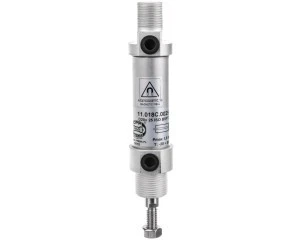 Nowa generacja siłowników pneumatycznych, zgodnych - w zakresie wymiarów gabarytowych - z normą ISO 6432. Norma ta zapewnia całkowitą zamienność siłownika oraz elementów mocujących. W siłowniku astosowano importowane uszczelnienia poliuretanowe o najwyższej odporności na ścieranie, co w znacznym stopniu podwyższa ich trwałość oraz umożliwia pracę siłownika w warunkach bezsmarowychm przy suchym, oczyszczonym powietrzu, przy zachowaniu wysokiej trwałości i wytrzymałości. Siłowniki mogą mieć zabudowany element magnetyczny w tłoku, umożliwiający stosowanie czujników położenia (tzw. BSPT - Bezstykowa Sygnalizacja Położenia Tłoka). Siłownik z jednostronnym tłoczyskiem dwustronnego działania. Średnica siłownika: D20. Skok 25. Posiada BSPT. Maksymalne ciśnienie pracy: 1,0 MPa. Zakres temperatur pracy: od -20 do + 80°C. Zakres skoków roboczych: - dla siłowników dwustronnego działania: od 5 do 300 mm. Pozycja pracy: dowolna. Sposób zasilania: przewodowo sprężonym powietrzem o maksymalnej wielkości cząstek stałych 10µm (nie wymaga smarowania) lub przewodowo sprężonym powietrzem o maksymalnej wielkości cząstek stałych 40µm, smarowanym mgłą olejową: 2 - 5 kropli/m?.