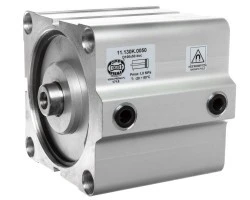 Pneumatyczne siłowniki dociskowe o krótkim skoku, stosowane w układach pneumatycznych jako elementy wkonawcze. Przeznaczone są do specyficznych zastosowań, zwłaszcza tam, gdzie jest ograniczone miejsce pod ich zabudowę. Posiadają importowane uszczelnienia poliuretanowe o najwyższej odporności na ścieranie, co w znacznym stopniu podwyższa ich trwałość oraz umożliwia pracę siłownika w warunkach bezsmarowychm przy suchym, oczyszczonym powietrzu, przy zachowaniu wysokiej trwałości i wytrzymałości. W siłownikach o średnicy D32 zastosowano najnowszy typ tłoka PNEUKO, który posiada amortyzator z tworzywa zabezpieczający przed uderzeniem w pokrywy oraz zintegrowany magnes. Pozwala to na stosowanie czujników pola magnetycznego (tzw. BSPT - Bezstykowa Sygnalizacja Położenia Tłoka). Siłownik z jednostronnym tłoczyskiem dwustronnego działania. Średnica siłownika: D100. Skok 50. Posiada BSPT. Maksymalne ciśnienie pracy: 1,0 MPa. Zakres temperatur pracy: od -20 do + 80°C. Zakres skoków roboczych: - dla siłowników dwustronnego działania: od 5 do 50 mm; - dla siłowników jednostronnego działania od 5 do max. 50 mm (uwaga: inne skoki wykonuje się na zamówienie). Pozycja pracy: dowolna. Sposób zasilania: przewodowo sprężonym powietrzem o maksymalnej wielkości cząstek stałych 10µm (nie wymaga smarowania) lub przewodowo sprężonym powietrzem o maksymalnej wielkości cząstek stałych 40µm, smarowanym mgłą olejową: 2 - 5 kropli/m?.