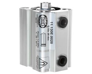 Pneumatyczne siłowniki dociskowe o krótkim skoku, stosowane w układach pneumatycznych jako elementy wkonawcze. Przeznaczone są do specyficznych zastosowań, zwłaszcza tam, gdzie jest ograniczone miejsce pod ich zabudowę. Posiadają importowane uszczelnienia poliuretanowe o najwyższej odporności na ścieranie, co w znacznym stopniu podwyższa ich trwałość oraz umożliwia pracę siłownika w warunkach bezsmarowychm przy suchym, oczyszczonym powietrzu, przy zachowaniu wysokiej trwałości i wytrzymałości. W siłownikach o średnicy D32 zastosowano najnowszy typ tłoka PNEUKO, który posiada amortyzator z tworzywa zabezpieczający przed uderzeniem w pokrywy oraz zintegrowany magnes. Pozwala to na stosowanie czujników pola magnetycznego (tzw. BSPT - Bezstykowa Sygnalizacja Położenia Tłoka). Siłownik z jednostronnym tłoczyskiem dwustronnego działania. Średnica siłownika: D32. Skok 25. Posiada BSPT. Maksymalne ciśnienie pracy: 1,0 MPa. Zakres temperatur pracy: od -20 do + 80°C. Zakres skoków roboczych: - dla siłowników dwustronnego działania: od 5 do 50 mm; - dla siłowników jednostronnego działania od 5 do max. 50 mm (uwaga: inne skoki wykonuje się na zamówienie). Pozycja pracy: dowolna. Sposób zasilania: przewodowo sprężonym powietrzem o maksymalnej wielkości cząstek stałych 10µm (nie wymaga smarowania) lub przewodowo sprężonym powietrzem o maksymalnej wielkości cząstek stałych 40µm, smarowanym mgłą olejową: 2 - 5 kropli/m?.