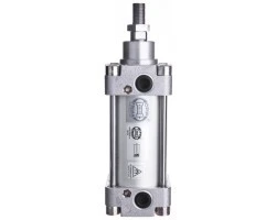 Standardowe siłowniki pneumatyczne, zgodne - w zakresie wymiarów gabarytowych - z normą ISO 6431 oraz VDMA 24562. Normy te zapewniają całkowitą zamienność siłownika oraz elementów mocujących. W siłowniku zastosowano importowane uszczelnienia poliuretanowe o najwyższej odporności na ścieranie, co w znacznym stopniu podwyższa ich trwałość oraz umożliwia pracę siłownika w warunkach bezsmarowych. Siłowniki mogą być wykonane z uszczelnieniami do pracy w podwyższonej temperaturze. Siłowniki z zabudowanym elementem magnetycznym w tłoku umożliwia stosowanie czujników pola magnetycznego (tzw. BSPT - Bezstykowa Sygnalizacja Położenia Tłoka). Siłownik z jednostronnym tłoczyskiem dwustronnego działania. Średnica siłownika: D40. Skok 300. Posiada BSPT. Maksymalne ciśnienie pracy: 1,0 MPa. Zakres temperatur pracy: - dla siłownika standardowego: od -20 do + 80°C ; - dla siłownika do pracy w podwyższonej temperaturze: od -20 do + 150°C. Zakres skoków roboczych: od 5 do 500 mm (uwaga: inne skoki wykonuje się na zamówienie). Pozycja pracy: dowolna. Sposób zasilania: przewodowo sprężonym powietrzem o maksymalnej wielkości cząstek stałych 10µm (nie wymaga smarowania) lub przewodowo sprężonym powietrzem o maksymalnej wielkości cząstek stałych 40µm, smarowanym mgłą olejową: 2 - 5 kropli/m?.