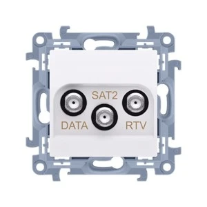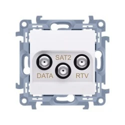 Simon 10 Gniazdo antenowe końcowe RTV‑DATA‑SAT. 1xWE 5÷2400 MHz 3xWY /F/ (RTV:88÷900 MHz) (DATA: 5÷900 MHz)( SAT: 950÷2400 MHz)