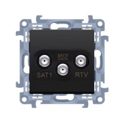 Simon 10 Gniazdo antenowe satelitarne podwójne SAT‑SAT‑RTV (moduł), 1x wejście: 5 MHz‑2,4 GHz czarny mat CASK2F.01/49