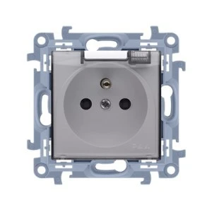 Simon 10 Gniazdo pojedyncze IP44 z przesłonami torów prądowych bez uszczelki klapka transp. biały, szybkozłącza CGZ1BCUZ.01/11A