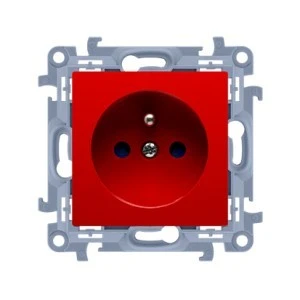 Simon 10 Gniazdo pojedyncze z uziemieniem z przesłonami torów prądowych czerwony 16A, szybkozłącza, CGZ1CZ.01/22