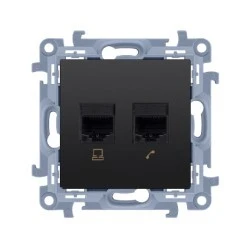 Simon 10 Gniazdo komputerowe RJ45 kategoria 5e + telefoniczne RJ12 (moduł) czarny mat C5T12.01/49