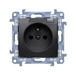 Simon 10 Gniazdo wtyczkowe z uziemieniem pojedyncze (moduł) 16A, 250V, szybkozłącza, czarny mat CGZ1C.01/49