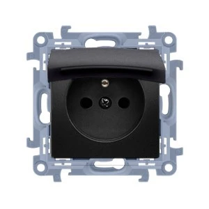Simon 10 Gniazdo wtyczkowe IP44 Z USZCZELKĄ z przesłonami, klapka w kolorze (moduł) szybkozłącza, czarny mat CGZ1BCZ.01/49