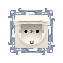 Simon 10 Gniazdo pojedyncze SCHUKO z uszczelką z przesłonami klapką tran. kremowe 16A 250V IP44 CGSZ1BZ.01/41