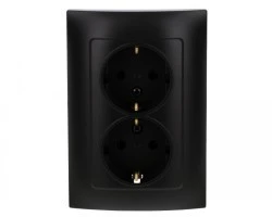 Simon 10 Gniazdo wtyczkowe Schuko podwójne 16A, 250V, zaciski śrubowe czarny mat CGSZ2/49