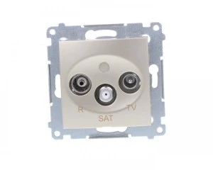 Gniazdo antenowe ma stylowy, złoty kolor o matowej powierzchni, który dodaje mu elegancji. Montuje się go przy użyciu pazurków i śruby, podtynkowo.