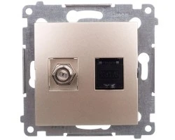 Simon 54 Gniazdo antenowe typu F+ komputerowe RJ45 kat.6 złoty mat DASFRJ45.01/44