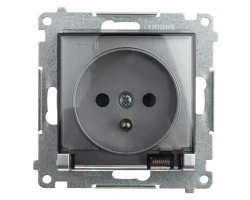 Simon 54 Gniazdo bryzgoszczelne z/u IP44 z przesłoną torów i klapką transparentną srebrny mat DGZ1BZ.01/43A