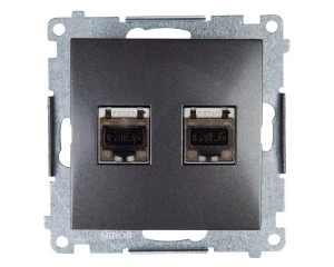 Producent wyposażył gniazdo w uchylną pokrywę, ochronę przeciwpyłową oraz konfigurację w postaci elementu podstawowego z centralną plakietką osłonową. Urządzenie wykonane zostało z wysokiej jakości tworzywa termoplastycznego o stopniu ochrony IP20. Jego elegancki, antracytowy kolor w matowym wykończeniu doskonale dopasuje się do minimalistycznych i nowoczesnych wnętrz, zarówno w domowych gabinetach, jak i w biurach. Montaż gniazda jest bardzo prosty i szybki. Poradzi sobie z nim nawet początkujący użytkownik, któremu daleko do umiejętności elektromontera czy elektroinstalatora. Producent zaleca montaż podtynkowy za pomocą pazurków i śruby.