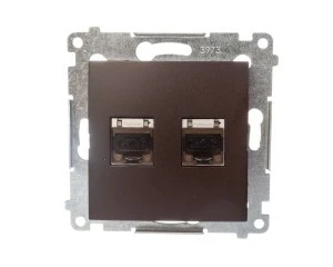 Simon 54 Gniazdo komputerowe podwójne 2xRJ45 kat.6 ekranowane z przesłoną brąz mat D62E.01/46