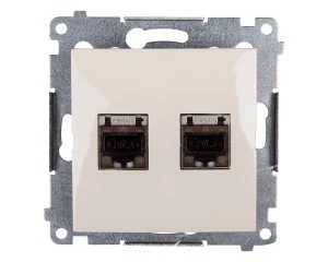 Simon 54 Gniazdo komputerowe podwójne 2xRJ45 kat.6 ekranowane z przesłoną kremowe D62E.01/41