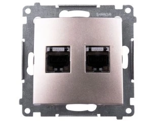 Simon 54 Gniazdo komputerowe podwójne 2xRJ45 kat.6 ekranowane z przesłoną zloty mat D62E.01/44