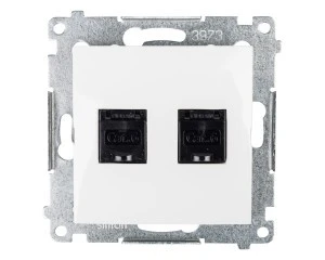 Simon 54 Gniazdo komputerowe podwójne 2xRJ45 kat.6 z przesłoną białe D62.01/11