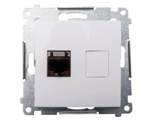 Simon 54 Gniazdo komputerowe pojedyncze RJ45 kat.6 ekranowane z przesłoną białe D61E.01/11