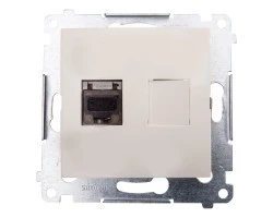 Simon 54 Gniazdo komputerowe pojedyncze RJ45 kat.6 ekranowane z przesłoną kremowe D61E.01/41
