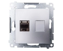 Simon 54 Gniazdo komputerowe pojedyncze RJ45 kat.6 ekranowane z przesłoną srebrny mat D61E.01/43
