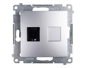Simon 54 Gniazdo komputerowe pojedyncze RJ45 kat.6 z przesłoną srebrny mat D61.01/43