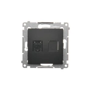 Simon 54 Gniazdo komputerowe pojedyncze RJ45 kategoria 6 z przesłoną przeciwkurzową (moduł) czarny mat D61.01/49