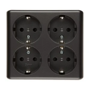Simon 54 Gniazdo poczwórne Schuko natynkowe z przesłonami wersja skandynawska 16A 250V, szybkozłącza, antracyt EGSZ4SNZ/48