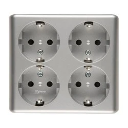 Simon 54 Gniazdo poczwórne Schuko natynkowe z przesłonami wersja skandynawska, szybkozłącza, srebrny mat EGSZ4SNZ/43