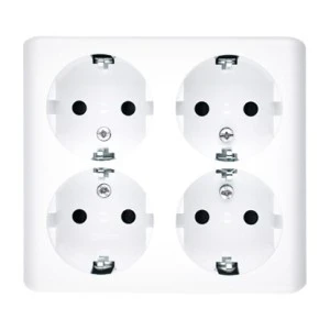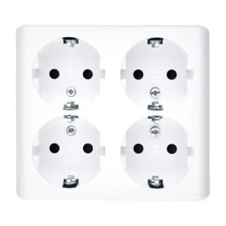 Simon 54 Gniazdo poczwórne Schuko natynkowe z przesłonami wersja skandynawska, szybkozłącza, białe EGSZ4SNZ/11