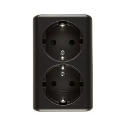 Simon 54 Gniazdo podwójne Schuko natynkowe z przesłonami torów prąd. wer. skand. 16A 250V zaciski śrubowe czarny mat EGSZ2NZ/49