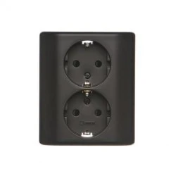 Simon 54 Gniazdo podwójne Schuko podtynkowe z przesłonami torów prąd. wer. skand. 16A 250V szybkozłącza, czarny mat EGSZ2SPZ/49