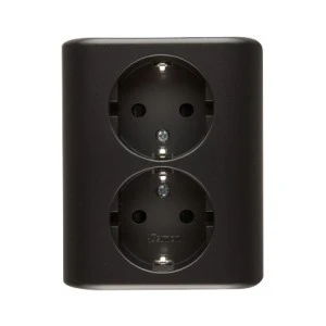 LOGI Gniazdo podwójne 2x2P+Z Schuko kompletne śrubowe 16A 250V Grafit 25272