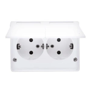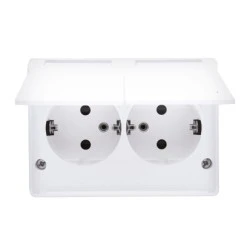 Simon 54 Gniazdo podwójne z/u 16A IP20 z przesłoną torów białe DGZ2MZ.01/11