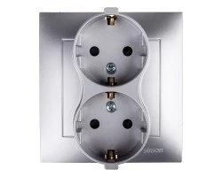 Simon 54 Gniazdo podwójne SCHUKO z/u 16A IP20 z przesłoną torów srebrny mat DGSz2Z/43