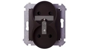 Simon 54 Gniazdo podwójne z/u 16A IP20 z przesłoną torów brąz mat DGZ2MZ.01/46