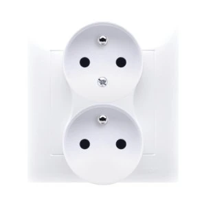 Simon 54 Gniazdo podwójne z/u 16A IP20 z przesłoną torów białe DGZ2MZ.01/11